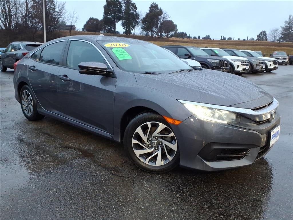2018 Honda Civic EX â" 4-Cyl 2.0L Gasoline - Salem, VA This 2018 Honda Civic EX in Salem, VA offers reliable performance, modern tech, and exceptional value. Powered by a fuel-efficient 4-cylinder 2.0L gasoline engine, the Honda Civic EX delivers a balanced blend of responsive acceleration and excellent fuel economy for daily commutes and weekend drives. Well-maintained and feature-rich, this pre-owned Honda Civic stands out as the best price in the area for buyers seeking quality and savings. Comfort and convenience features include remote start for cold mornings, a Back-Up Camera for safer parking, and Hands Free Bluetooth for seamless phone and audio access while on the road. Apple CarPlay and Android Auto integration provide intuitive smartphone connectivity so you can use navigation, music, and messaging apps through the vehicle's infotainment system. The Honda Civic EX cabin is designed for driver comfort with supportive seating and thoughtful interior storage. Safety and reliability are core Honda strengths, and this Honda Civic EX continues that tradition with dependable engineering and a strong ownership reputation. Whether you're shopping for an economical commuter or a practical compact sedan with modern connectivity, this vehicle delivers. Located in Salem, VA and competitively priced to sell quickly, this 2018 Honda Civic EX represents excellent value â" schedule a test drive today to experience why it's the best-priced Honda Civic available.