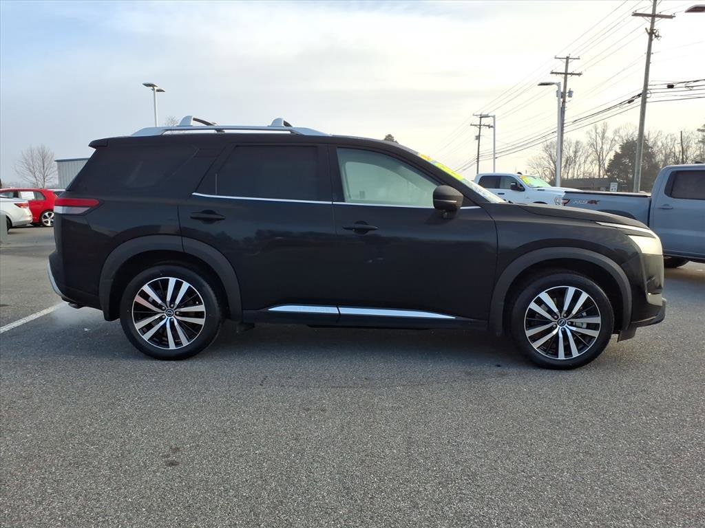 Experience premium family utility with this 2025 Nissan Pathfinder Platinum, now available in Lynchburg, VA. Equipped with a robust 3.5L V6 gasoline engine and full-time 4WD, this Nissan Pathfinder delivers confident performance and composed handling in all seasons. At just 23,268 miles, it offers low mileage for a late-model SUV, combining modern technology with dependable mechanical life remaining.